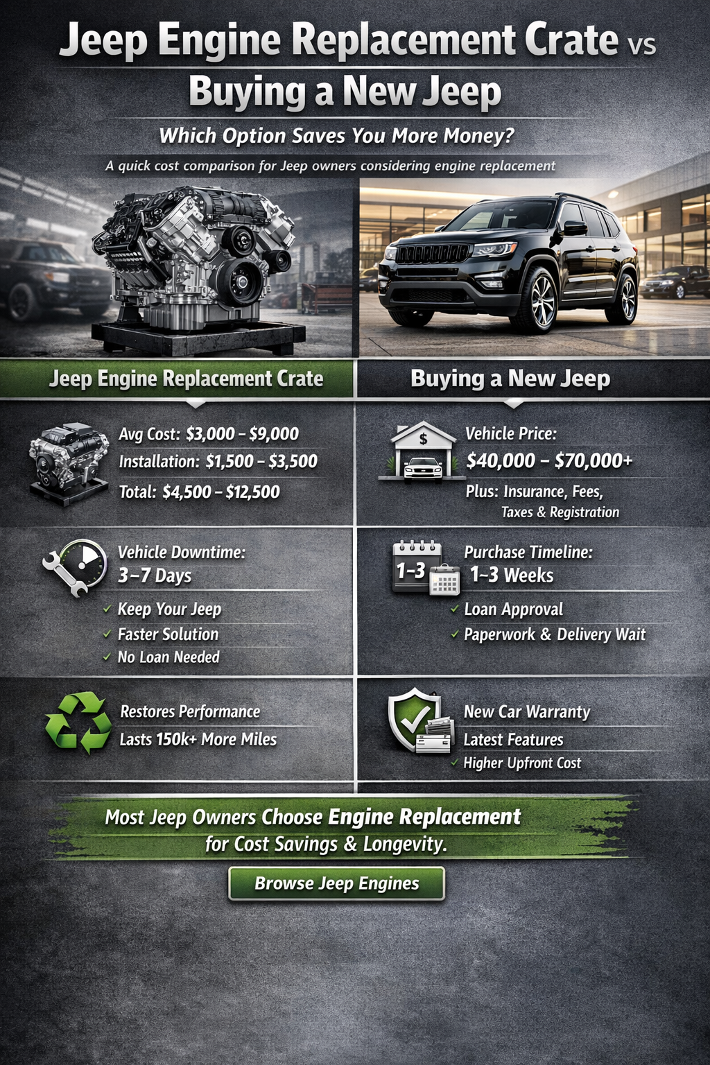 When these symptoms appear repeatedly, many drivers begin searching for a jeep engine replacement crate for sale online.