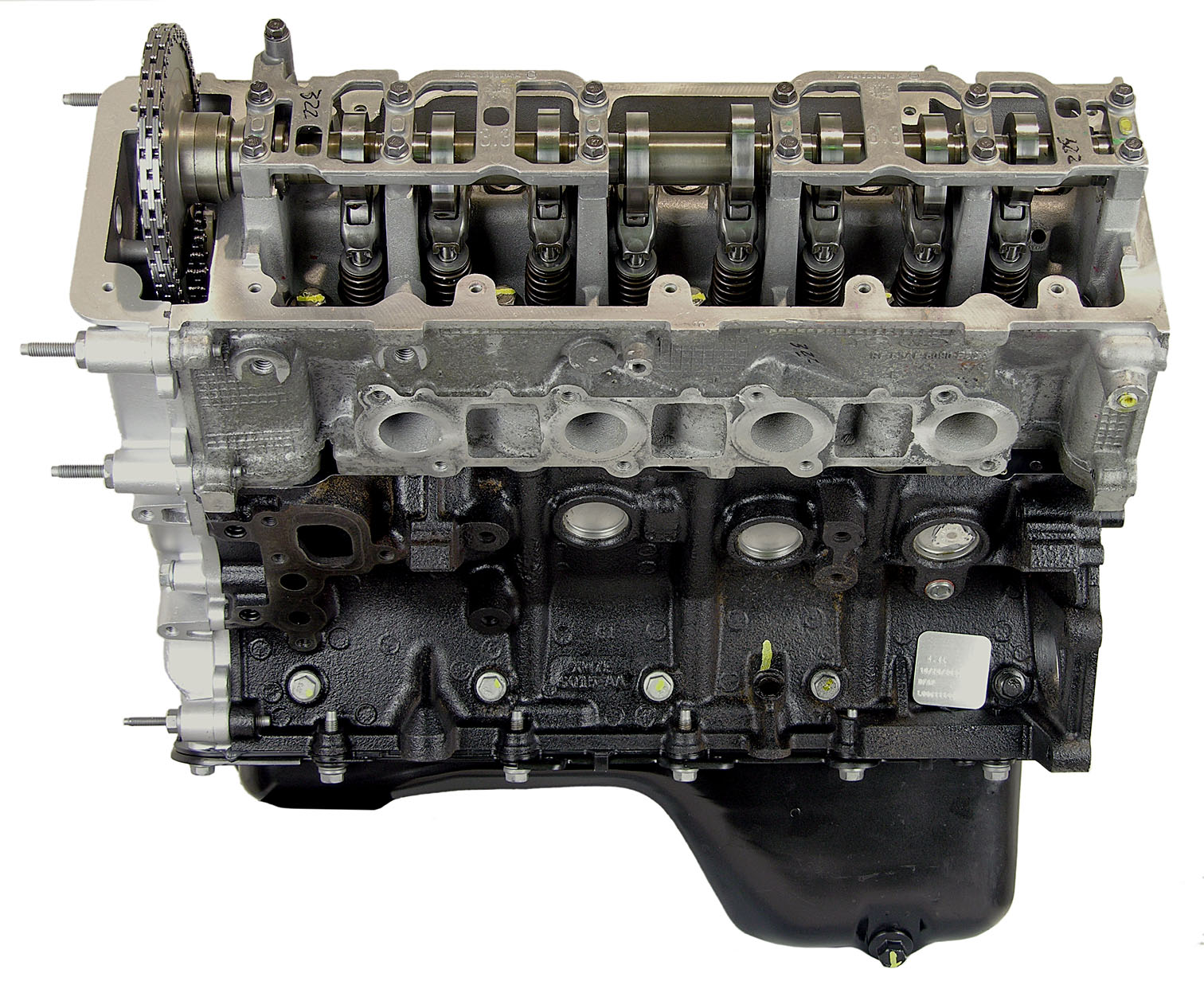 - Engine comes with Timing cover and Oil Pan Installed