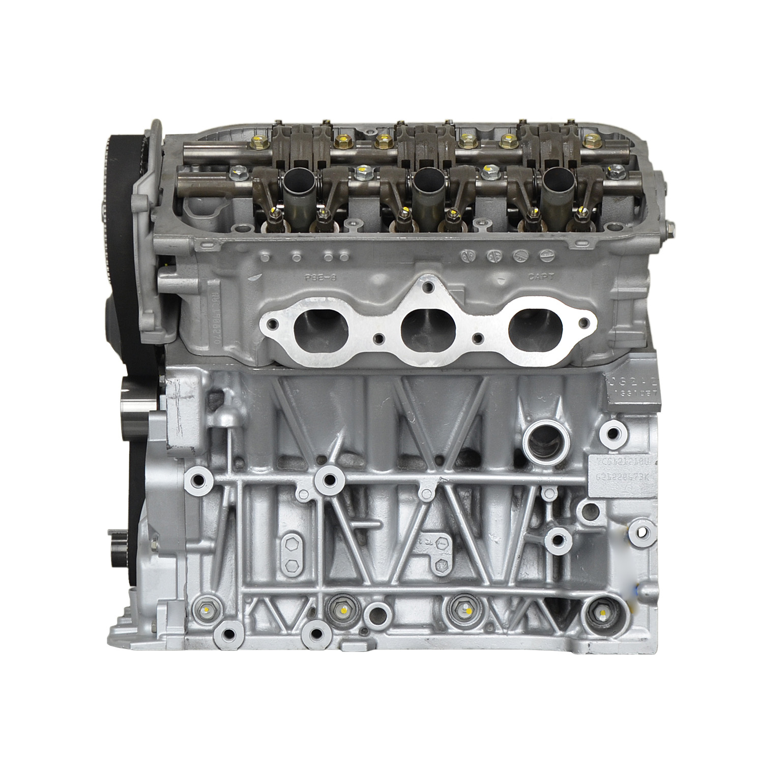 • Machining and New Parts – Deck surfaces are CNC machined and new parts are added. New parts inlcude bearings, pistons, rings, lifters, oil pump, gaskets, Viton™ valve seals, freeze plugs, galley plugs and either a new timing chain (with new tensioners) or a new timing belt (with new tensioner). If an engine has a timing-driven water pump, a new pump is installed.