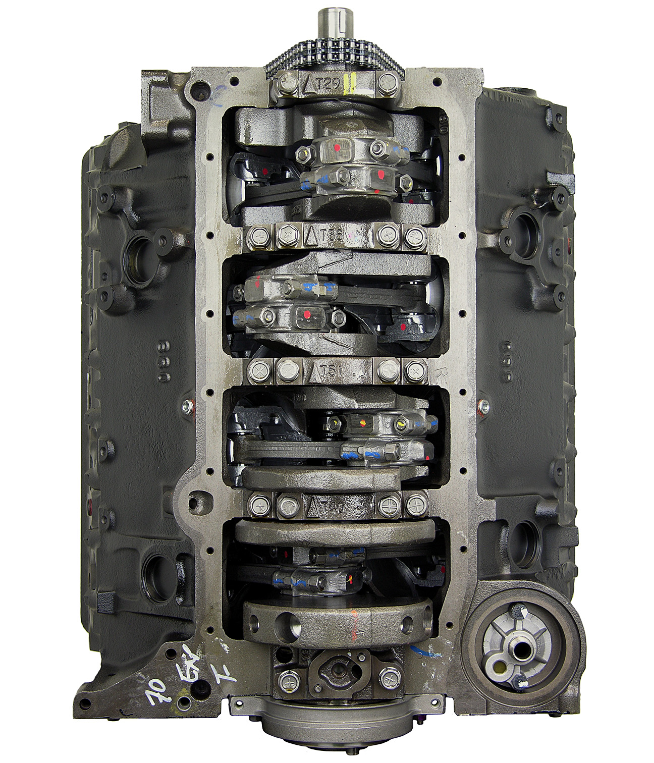 • Machining and New Parts – Deck surfaces are CNC machined and new parts are added. New parts inlcude bearings, pistons, rings, lifters, oil pump, gaskets, Viton™ valve seals, freeze plugs, galley plugs and either a new timing chain (with new tensioners) or a new timing belt (with new tensioner). If an engine has a timing-driven water pump, a new pump is installed.