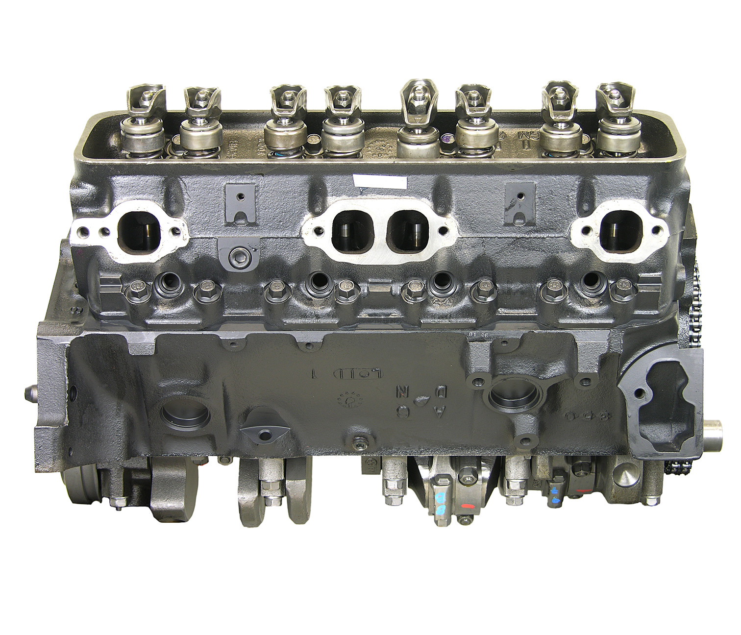 - Machining and New Parts – Deck surfaces are CNC machined and new parts are added. New parts inlcude bearings, pistons, rings, lifters, oil pump, gaskets, Viton™ valve seals, freeze plugs, galley plugs and either a new timing chain (with new tensioners) or a new timing belt (with new tensioner). If an engine has a timing-driven water pump, a new pump is installed.