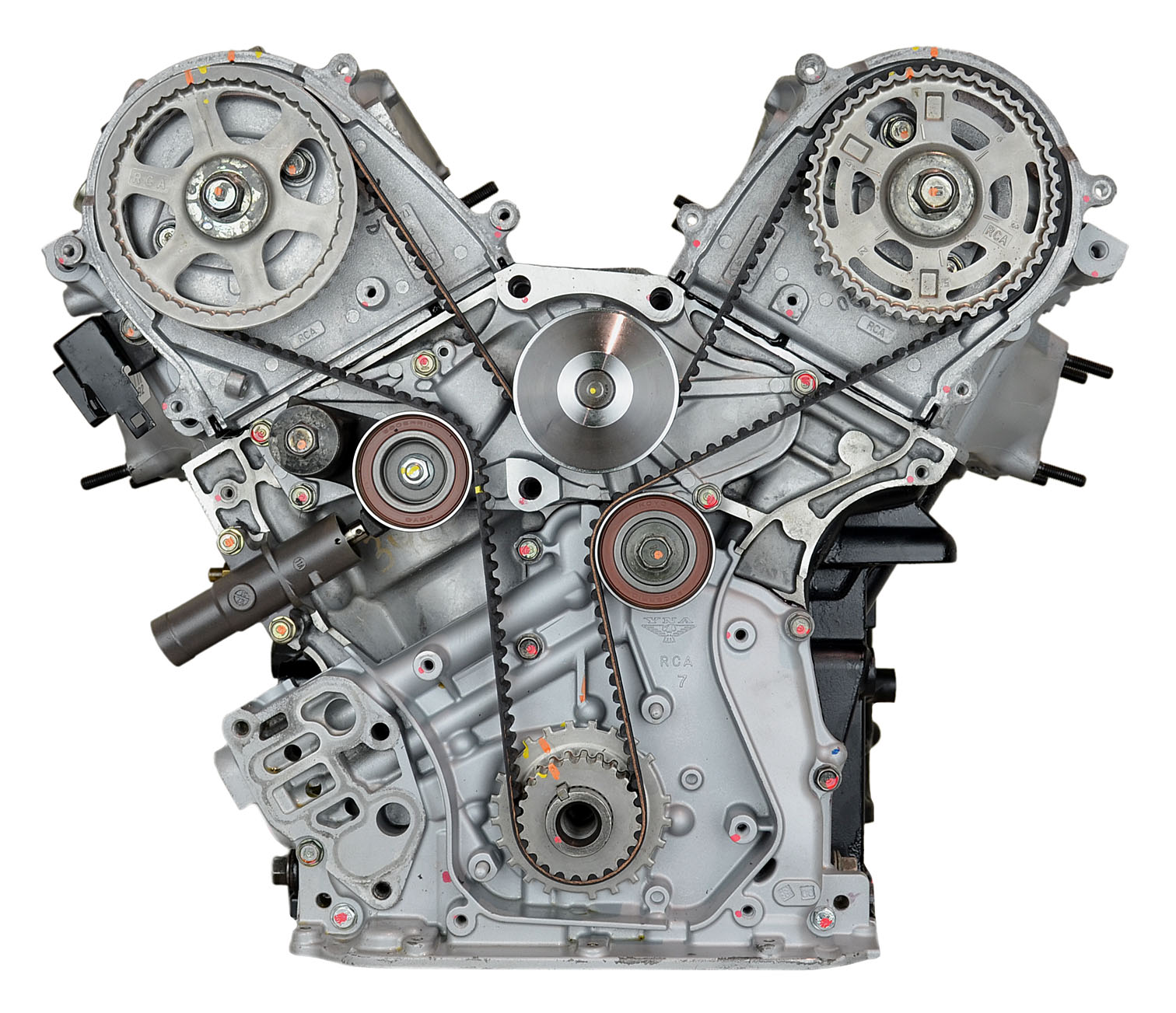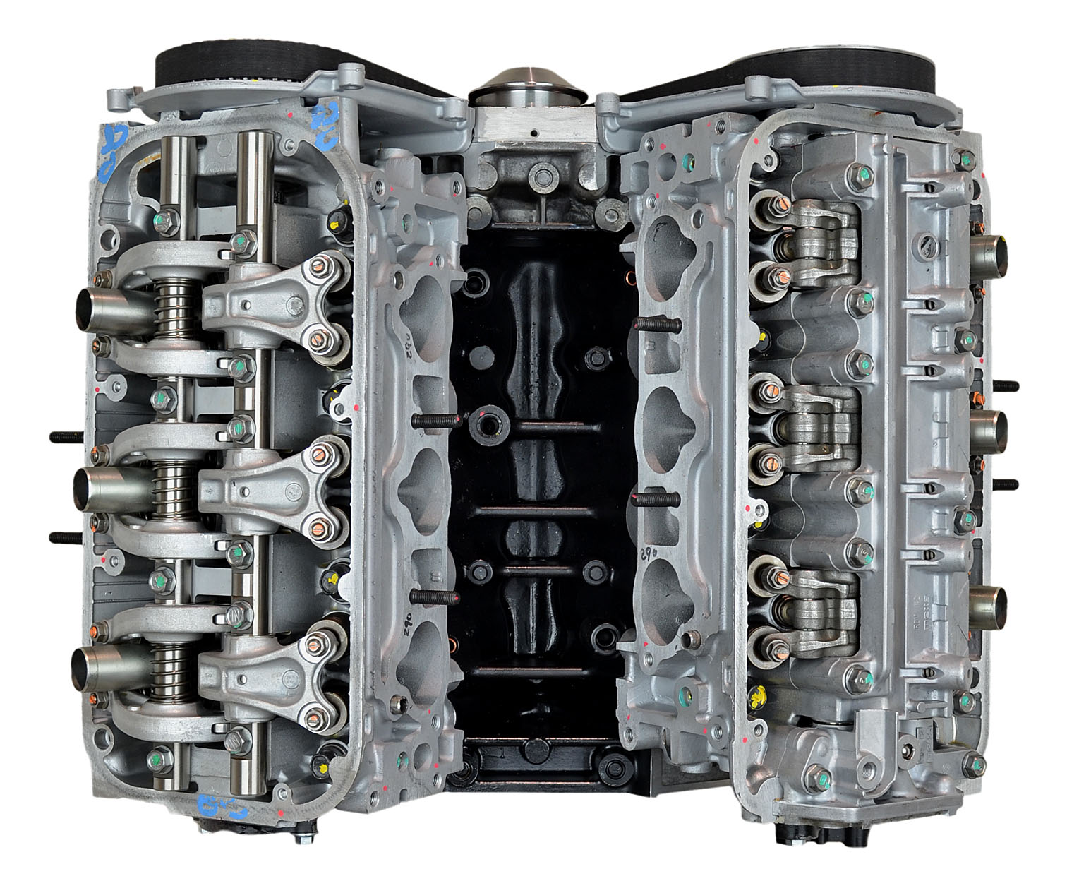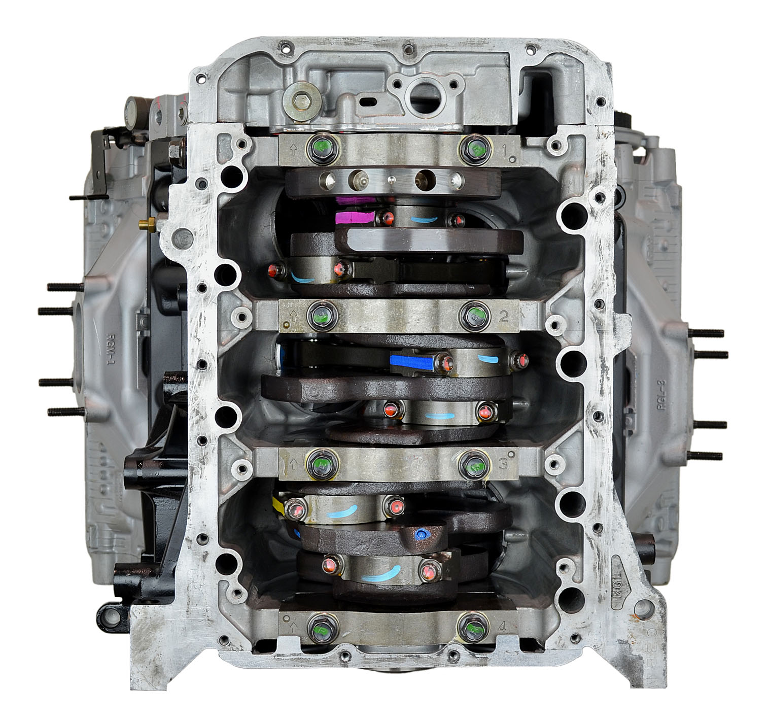 • Machining and New Parts – Deck surfaces are CNC machined and new parts are added. New parts inlcude bearings, pistons, rings, lifters, oil pump, gaskets, Viton™ valve seals, freeze plugs, galley plugs and either a new timing chain (with new tensioners) or a new timing belt (with new tensioner). If an engine has a timing-driven water pump, a new pump is installed.