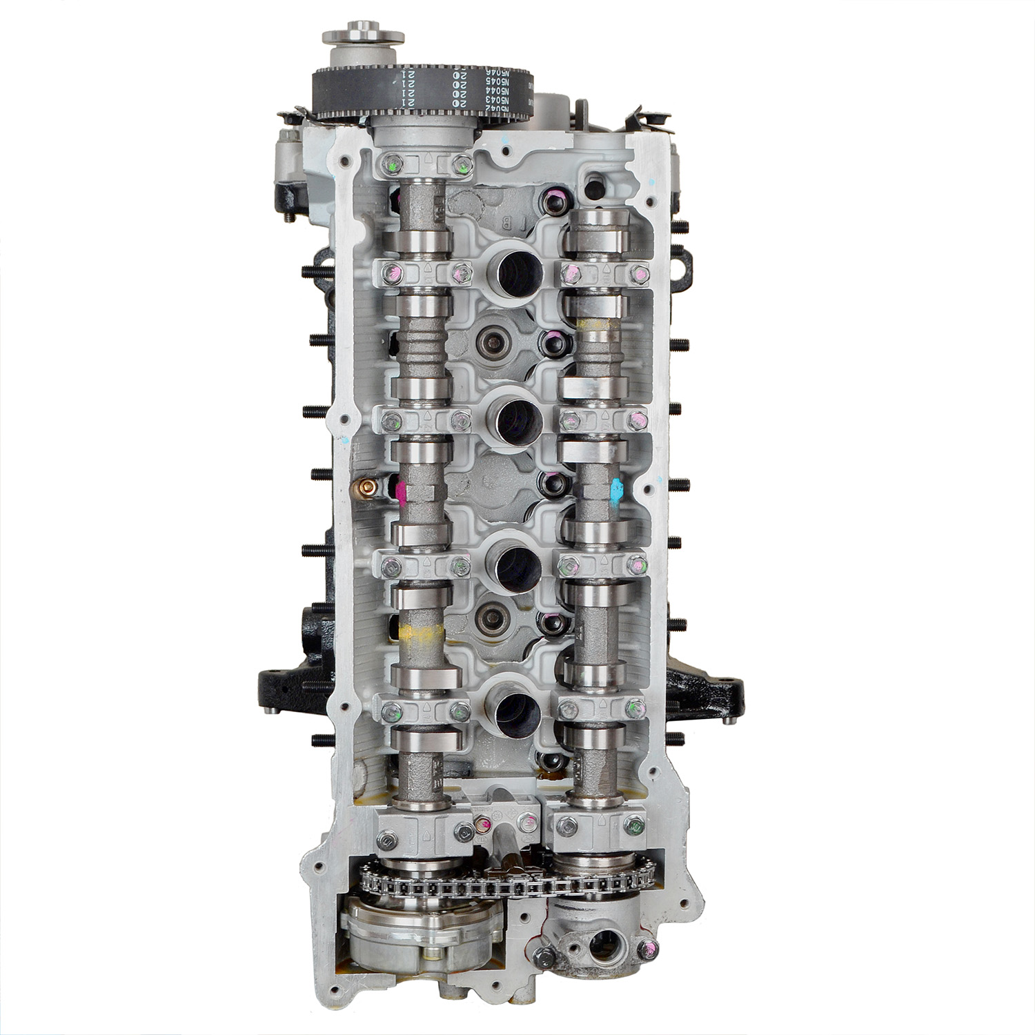 - Machining and New Parts – Deck surfaces are CNC machined and new parts are added. New parts inlcude bearings, pistons, rings, lifters, oil pump, gaskets, Viton™ valve seals, freeze plugs, galley plugs and either a new timing chain (with new tensioners) or a new timing belt (with new tensioner). If an engine has a timing-driven water pump, a new pump is installed.