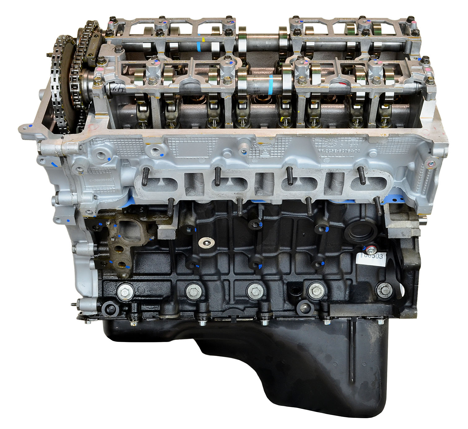 - Machining and New Parts – Deck surfaces are CNC machined and new parts are added. New parts inlcude bearings, pistons, rings, lifters, oil pump, gaskets, Viton™ valve seals, freeze plugs, galley plugs and either a new timing chain (with new tensioners) or a new timing belt (with new tensioner). If an engine has a timing-driven water pump, a new pump is installed.