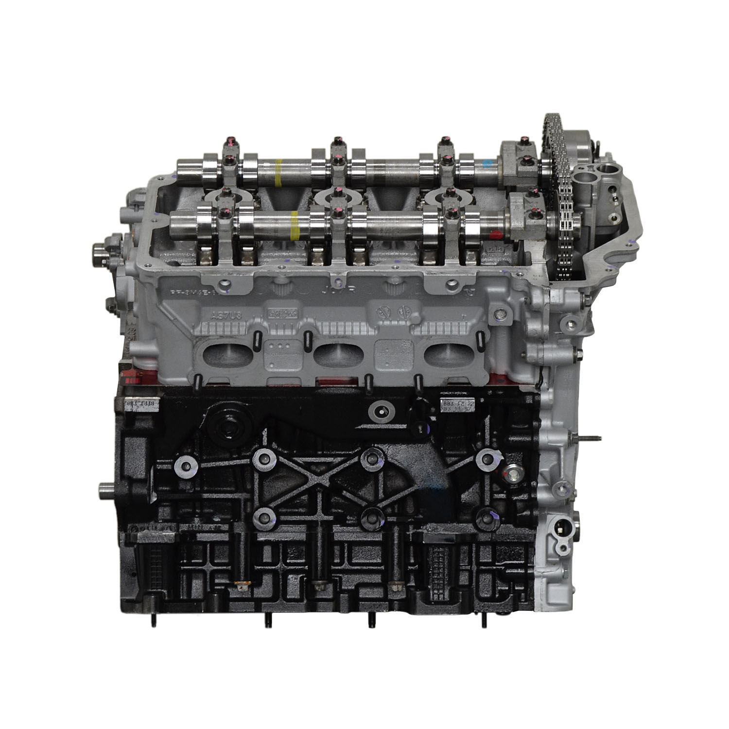 - Machining and New Parts – Deck surfaces are CNC machined and new parts are added. New parts inlcude bearings, pistons, rings, lifters, oil pump, gaskets, Viton™ valve seals, freeze plugs, galley plugs and either a new timing chain (with new tensioners) or a new timing belt (with new tensioner). If an engine has a timing-driven water pump, a new pump is installed.