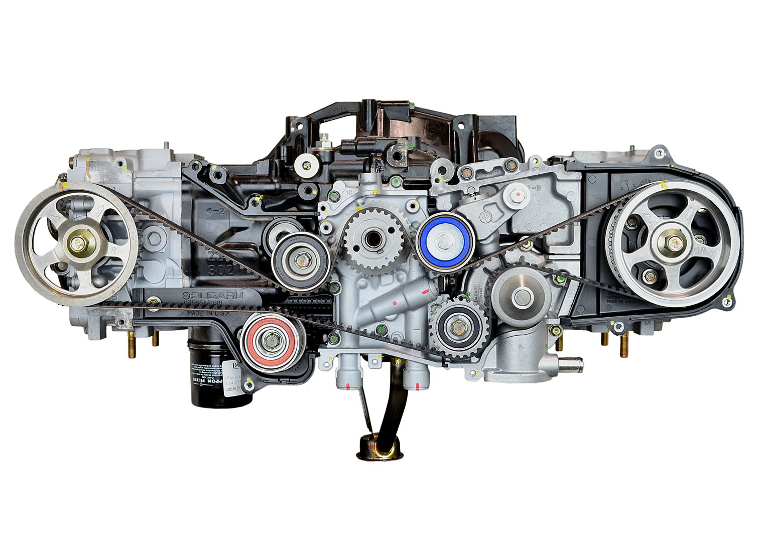 - Machining and New Parts – Deck surfaces are CNC machined and new parts are added. New parts inlcude bearings, pistons, rings, lifters, oil pump, gaskets, Viton™ valve seals, freeze plugs, galley plugs and either a new timing chain (with new tensioners) or a new timing belt (with new tensioner). If an engine has a timing-driven water pump, a new pump is installed.